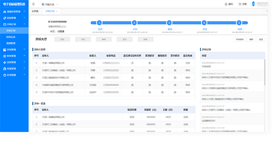 包含招标、投标、开标、评标、定标管理等,实现在线全流程管理操作
