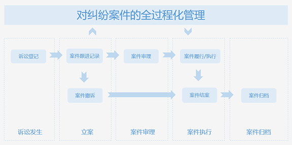 实现了从纠纷发生、立案、案件审理、案件执行、案件归档全过程化管理。